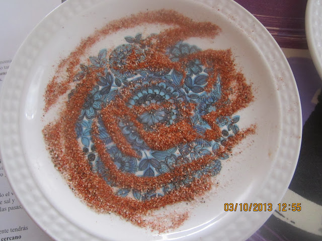 EN UN PLATILLO PONEMOS, SAL, PIMENTON , PIMIENTA Y CANELITA.